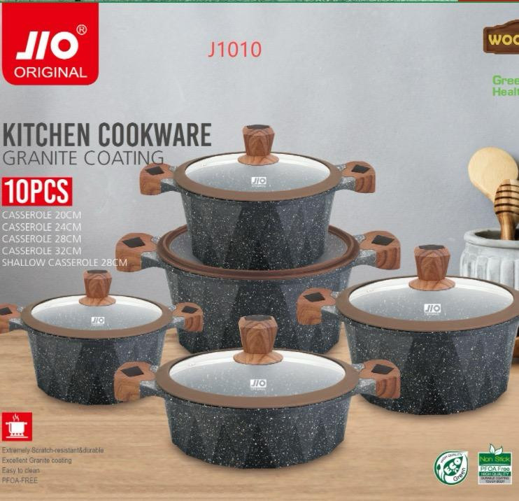 Heavy-Quality Construction for Durability: Built to withstand the demands of daily cooking, the 10pcs JIO Granite Cookware Set boasts a heavy-quality construction. Each piece is meticulously crafted to ensure long-lasting durability, making this cookware set a reliable companion in your kitchen for years to come. The sturdy construction not only enhances its lifespan but also ensures even heat distribution for efficient and precise cooking.