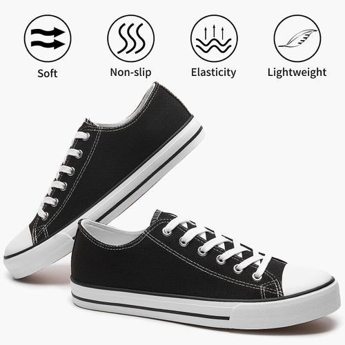 【Timeless Style】: Black&White solid canvas shoes are all classics styles and good choice for back to school gift,that can be easily paired with any casual clothes,and suitable for all year round.