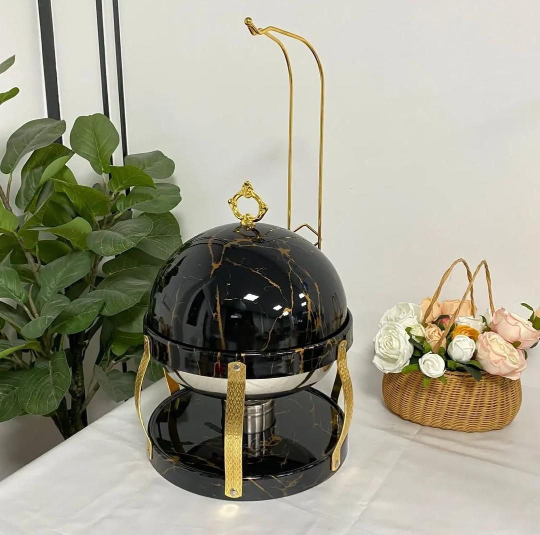 Stainless steel hot pot with elegant gold finish buffet, suitable for catering in hotel restaurants