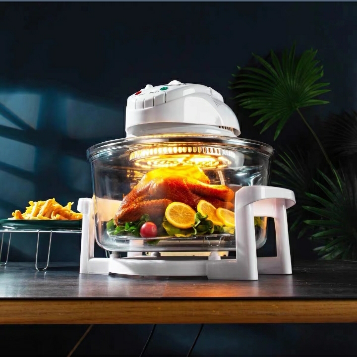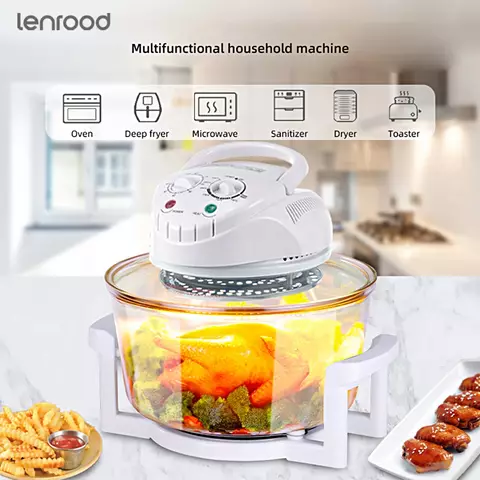 Name: Halogen Oven power: 3500w Material: high shed glass Cooking process visualization 360 degree hot air circulation multi-security protection upgrade uncoated pot oil-free low-fat multiple cooking mode
