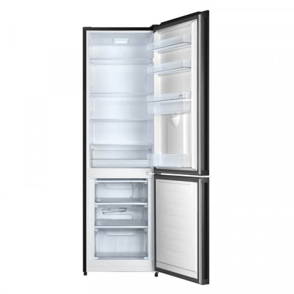 Hisense has upgraded this bottom freezer fridge to a beautiful black mirror finish. With a ultra thin 2L water dispenser, this A energy efficiency class fridge will suit your every need.The Hisense 269L Black Mirror Bottom Freezer with water dispenser has an A energy rating, adjustable thermostat, LED lighting, a reversible door and comes with more efficient cooling systems that will keep your food fresher.