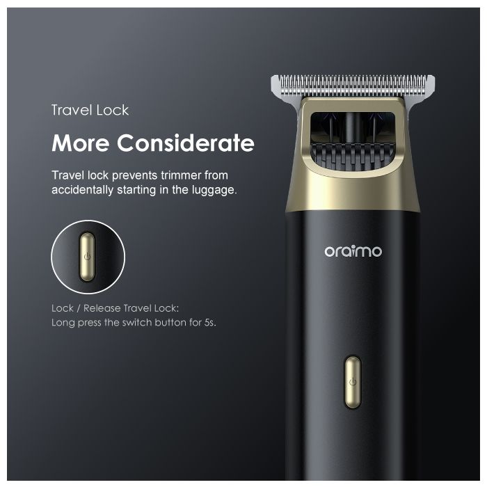 Travel lock prevents trimmer from accidentally starting in the luggage.