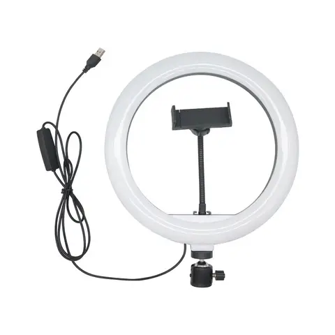 10 inch Ring Light:Dimmable and adjustable,you can adjust lighting effect from 10%-100%. Selfie ring light makes you be more engaging and charming. Special LED design, lightweight and portable. Constant current drive, low power loss. NO ultraviolet and infrared light radiation, low heat output, safety and environmental protection. Multifunction type support: fit for ring light,microphone,smart phone and camera 360°Rotation:Ring light can rotate 360 degrees, the light shines into every corner. USB Plug Powered:ring light power can be connect with computer,mobile power etc. Ball head & Phone clip:Suit for most kinds of smart phone and mini pad. It can use for outdoor photo light, filling light indoors, portrait, fashion, wedding art, advertisement photography, shooting video, etc.