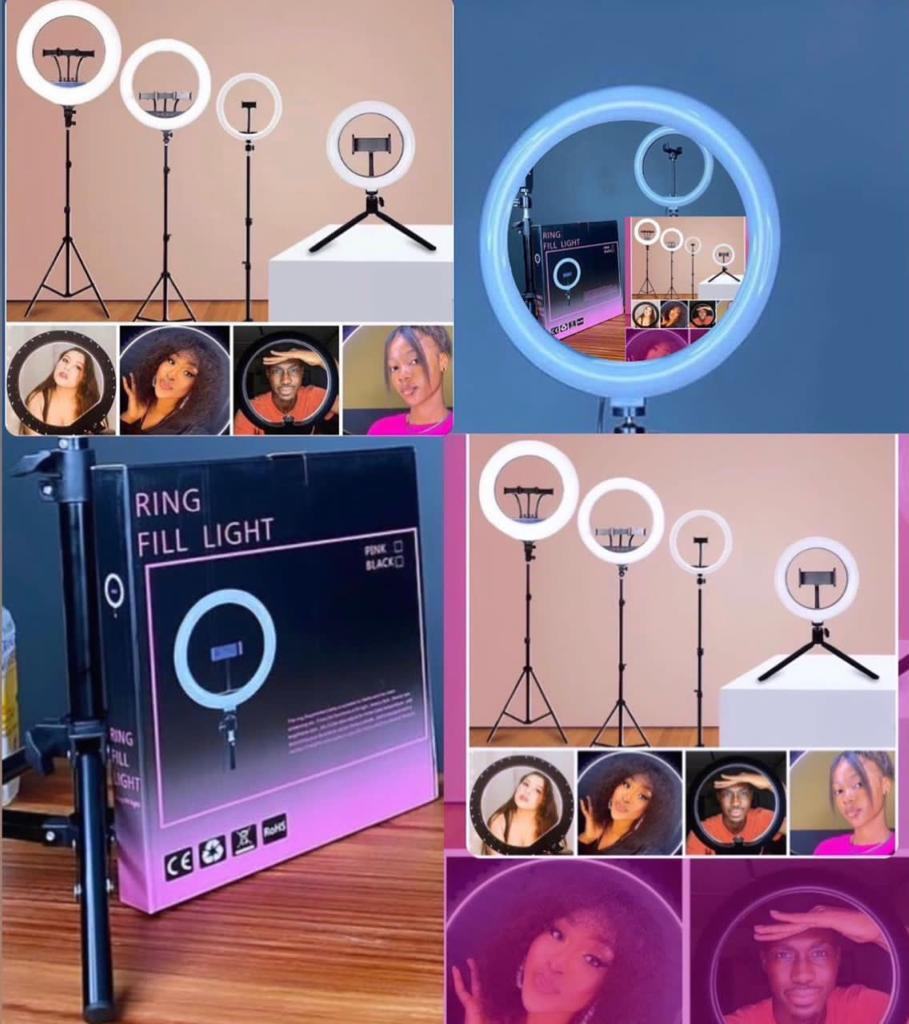1 x 10inch ring light 1 x Hose phone clip 1 x 68cm tripod stand 1 x Bluetooth 1 x Ball head