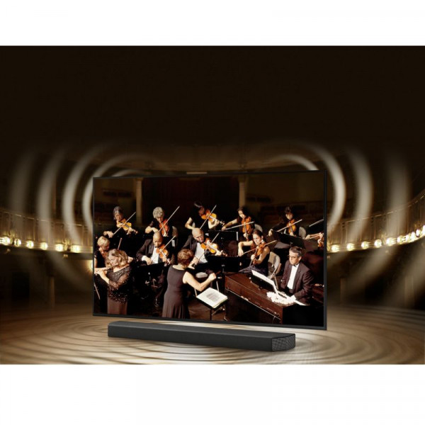 Surround yourself with sound from TV and soundbar orchestrated in harmony. Q Symphony uniquely allows TV and soundbar speakers to operate simultaneously for better surround effect without muting TV speakers.