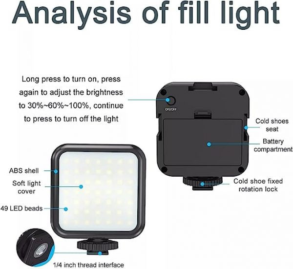 ESSENTIAL ACCESSORIES: Adjustable desk top tripod with phone mount, rechargeable LED with 3 brightness levels, rail mount bracket to accommodate any cold shoe or 1/4” thread accessories, and 3.5mm TRRS and lightning cables.
