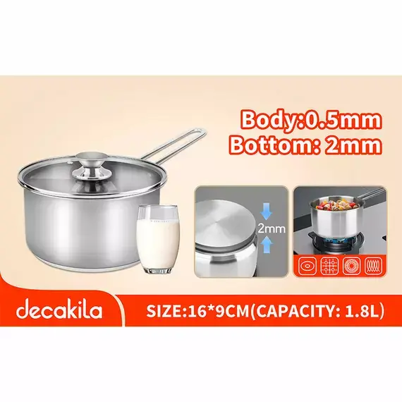 Elevate your kitchen essentials with the Decakila 16 × 9 cm Stainless Steel Sauce Pan – KMEP041M, a beautifully crafted cookware piece designed for everyday cooking. Made from high‑quality stainless steel, this saucepan combines strength, heat distribution, and easy maintenance — making it perfect for preparing soups, sauces, vegetables, and more.