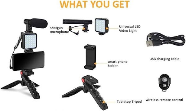 COMPLETE SMARTPHONE VIDEO KIT – with Shotgun Microphone, ultra bright LED 36 light, and adjustable tabletop tripod for recording videos, podcasts and more.